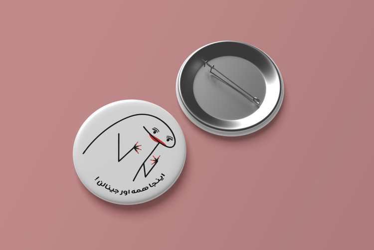 پیکسل میقولی طرح اینجا همه اورجینالن مناسب نصب روی لباس ، کیف و ... می باشد .