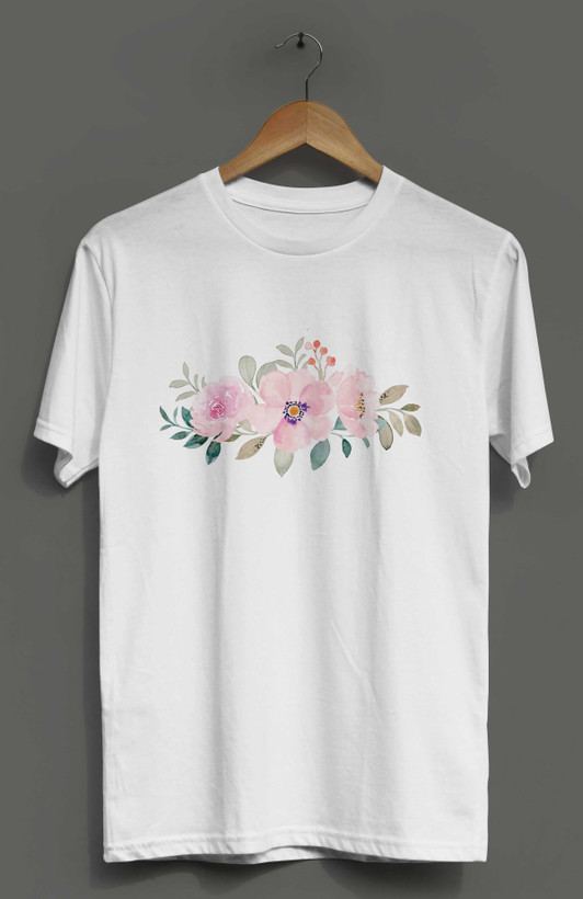 تیشرت آستین کوتاه طرح گل آبرنگی