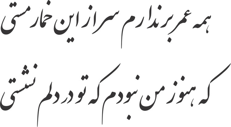 برچسب طرح شعر ( همه عمر بر ندارم سر از این خمار مستی . که من نبودم که تو در دلم نشستی ) مناسب نصب روی سطوح صاف بوده و بسیار مناسب نصب روی دیوار اتاق خواب و سالن پذیرایی می باشد .